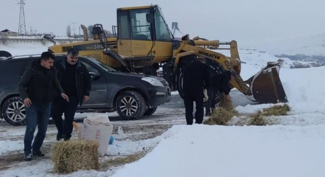 Kar sonrası ilçe genelindeki kar temizleme çalışmalarının son bulması ile belediye personeli ve Aşkale Belediye Başkanı doğaya yiyecek bıraktılar.