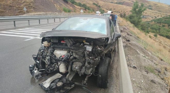 Alınan bilgiye göre, Erzincan’dan Erzurum istikametine seyir halindeki 06 EBT 916 plakalı otomobil, Tepebaşı mevkiinde yağmurun etkisiyle kayganlaşan yolda sürücünün direksiyon hakimiyetini kaybetmesi sonucu kontrolden çıkarak bariyerlere çarparak savruldu. Diğer sürücüler sürücü ve yanındaki eşine yardım ederken, ihbar üzerine olay yerine jandarma ekipleri sevk edildi. Sürücünün kazayı küçük sıyrıklarla atlatırken, kullanılamaz hale gelen otomobil ise çekiciyle yoldan kaldırıldı.