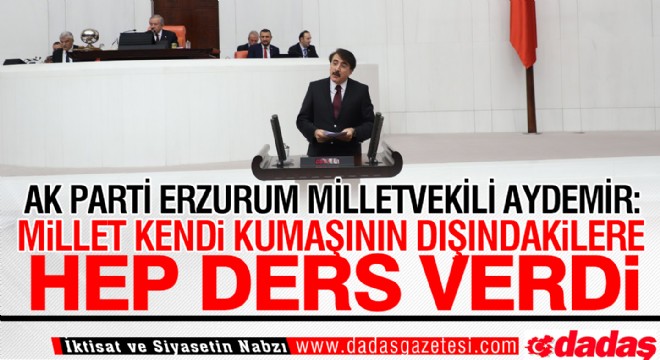 Mİlletvekili Aydemir, AK Parti’nin 17 yıldır ihya siyaseti yaptığı, 17 yılda 170 yıla denk gelen bir yatırım süreci gerçekleştirdiğini belirterek, 31 Mart’ı işaret etti ve ‘Millet kendi kumaşının dışındakilere hep ders verdi, bundan sonra da verecek Allah’ın izniyle. O tarihi bekleyin. ‘ dedi.