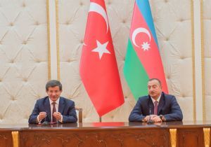 Azerbaycan’daki temasları kapsamında Azerbaycan Cumhurbaşkanı İlham Aliyev tarafından kabul edilen Başbakan Ahmet Davutoğlu, görüşmenin ardından düzenlenen ortak basın toplantısında konuştu. Sözlerine, “Tekrar öz vatanımda, evimde olmaktan büyük mutluluk duyuyorum” diyerek başlayan Başbakan Davutoğlu, “Hangi mevkide olursak olalım, hangi ifadeleri edersek edelim, bu vazifeleri yaparken Türkiye ile Azerbaycan arasında bir fark gözetmeyiz. Bizim için Türkiye’ye hizmet Azerbaycan’a hizmet etmektir” dedi. Daha önce dışişleri bakanı şimdi de başbakan olarak her zaman Azerbaycan’ı öz vatanı bildiğini ifade eden Davutoğlu, bundan sonra da Türkiye için çalıştığı kadar Azerbaycan için de çalışacaklarını söyledi. Davutoğlu, “Bizim olduğumuz yerde Azerbaycan vardır. Sayın İlham Aliyev’in olduğu yerde de Türkiye vardır. Birbirimizin olmadığı durumlarda da nasıl savunduğumuzu dünya alem bilir. Azerbaycan bizim için aşktır, sevdadır, bir muhabbettir. Bu manevi bağı Başbakan vasfıyla da geliştirmek derinleştirmek benim boynumun borcudur. Bu hislerle 77 milyon kardeşinden sayın Aliyev’e, değerli dostumuza selam getirdim” diye konuştu.