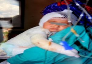 Ağrı'nın Tutak ilçesinde annesinin ekmek yaptığı tandıra düşerek feci şekilde yanan 2 yaşındaki çocuk Erzurum'da tedavi altına alındı.