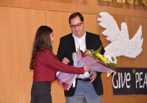 Konferansın ardından okul başkanı 11'inci sınıf öğrencisi Rabia Hilal Şener, Prof. Dr. Gürkan Öztürk'e çiçek takdim etti.