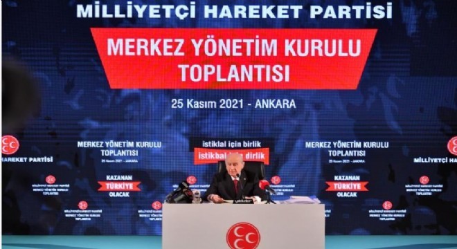 Bahçeli, “Türkiye’yi karıştırmak, karanlığa çekmek ve kaosa sürüklemek maksadıyla fırsat kollayan, eylem zemini yoklayan, işgal bahanesi arayan çevrelerin provokatif tahrikleri sahneye ve sokağa tutunmak için tetikte beklemektedir.” dedi.