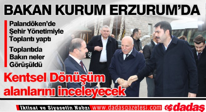 Bakan Kurum Palandöken dağında ki bir otelde Erzurum Valisi Okay Memiş, Büyükşehir Belediye Başkanı Mehmet Sekmen, AK Parti Milletvekili Zehra Taşkesenlioğlu ve İlçe Belediye Başkanları ile bir araya geldi.