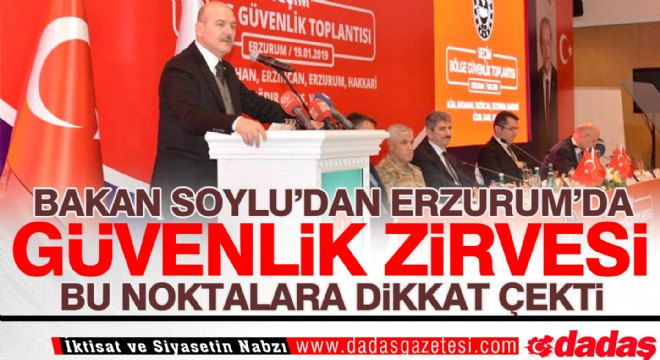 Milli mücadelenin en önemli adımlarından birinin atıldığı Erzurum'da, Ağrı, Ardahan, Erzincan, Hakkari, Iğdır, Kars ve Van'ın valileri, il jandarma komutanları ve il emniyet müdürlerinin katılımıyla ikinci toplantılarını yaptıklarını aktaran Bakan Soylu, şöyle devam etti: