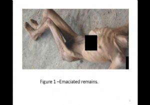 Cesetlerde açlık ve işkenceden dolayı renk değişimi, çürüme, doku bozuklukları görüldü. Cesetlerin yarıdan fazlasının aşırı derecede zayıf olduğu görüldü. Bu durum, açlığın bir işkence aracı olarak kullanıldığının delili olarak rapora kaydedildi. Açlıktan iskelet haline gelmiş cesetlerde ayrıca işkence izleri tespit edildi. Bazı cesetlerde elektrik verilmesinin ardından oluşan yaralar görüldü. Cesetlerin çoğu çıplak ya da asgari düzeyde giysili halde yerdeyken fotoğrafı çekildi.