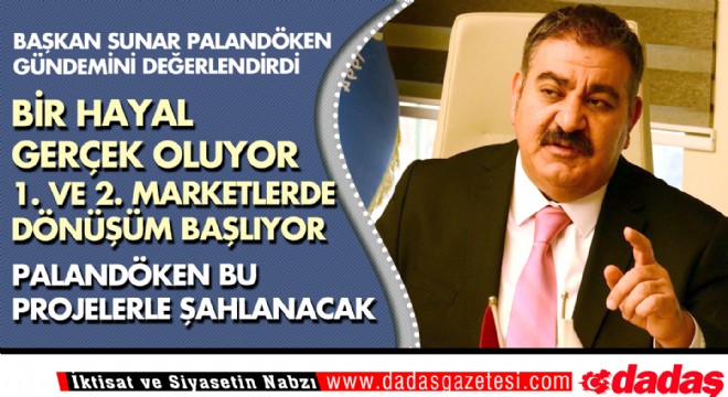 Rutin hizmetlerin bir kısmına değindikten sonra Başkan Sunar, gündemlerine aldıkları, Palandöken ilçesini cazibe merkezi haline getirecek projeleri sıraladı. “Muhammet Sunar ve ekibinin Palandöken ilçesinde hayata geçirmeyi hedeflediği projeler var.” diyerek, uygulamaya aldığı projelerde gelinen aşamalara değinen Başkan Sunar, özellikle 1. ve 2. Marketlerde yapılacak dönüşümle, Palandöken’de bir hayalin de gerçeğe dönüşeceğini kayda geçti. Başkan Sunar, “Adaylığımız sürecinde Palandöken’de kentsel dönüşüm yapmalıyız demiştik. Bina stokumuzun eskiliğinden bahsetmiştik. Bu noktada 1. Ve 2. Marketleri öncelik aldık. Bütün yetkili kurumlarla görüşmeye başlamıştım daha adayken. Hamdolsun adaylığımızdan itibaren bu projeyle ilgili bir mesafe elde etmeye başladık.” dedi