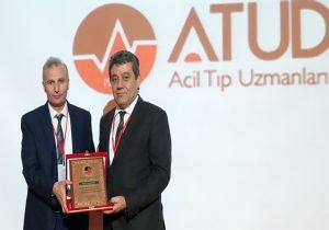 Acil Tıp Uzmanları Derneği Yönetim Kurulu Başkanı Prof. Dr. Başar Cander, Yönetim Kurulu adına ödülleri sahiplerine takdim etti.