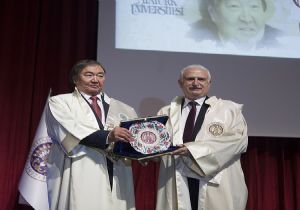Senato Kararının okunmasından sonra ise yine Rektör Koçak tarafından, Kazakistan’ın değerli Bilim Adamı, Yazar ve Diplomat Olcas Sulaymanov’a Fahri Doktora Diploması takdim edildi.