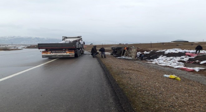 Bingöl yolunda tır devrildi: 1 yaralı
