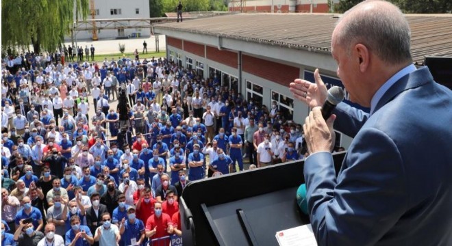 ‘Gelecek nesillere bırakacağımız en büyük miras, her alanda olduğu gibi savunma sanayinde de gerçekleştirdiğimiz eserlerimizdir’ diyen Cumhurbaşkanı Erdoğan, “Güçlü bir savunma sanayine sahip olmadan istiklal ve istikbalimize sahip olamayız. Zırhlı taşıyıcıları çok mu çok önemsiyorum. Bizi bu alana önem ve öncelik vermeye mecbur eden savunma sanayinde güvenilir olmaktır. Kendimiz, dostlarımız ve tüm insanlık için, daha adil, huzurlu, güvenli bir dünya kurmanın mücadelesini yürütüyoruz. Bize, ‘Ne işiniz var, Suriye’de, Karabağ’da Libya’da, Doğu Akdeniz’de’ dediler. Bize bunu diyenler ya dünyadan habersiz ya da düşmanın kılıcını çekmektedir. Biz Libya’da da varız, Azerbaycan’da da varız, Suriye’ye de de, Doğu Akdeniz’de de varız, olmaya da devam edeceğiz. Allah nasip ederse, 20 Temmuz’da Kuzey Kıbrıs’tayım. Geniş bir ekiple orada olacağız. Avrupa Komisyon Başkanı, ‘Kıbrıs’tan sert mesajlar vermeseniz’ dedi. ‘Nasıl mesajlar vereceğimi bana bildirirseniz, ben o metni orada okurum’ dedim. Bunlar kimin kim olduğunu hala öğrenememişler. Ben bu milletin bir evladıyım. Sen Erdoğan’ın ne zamandan beri talimatla konuşma yaptığını öğrendin. Biz hakkımız ne ise, bu hakkımızı söke söke alırız ve alacağız. Doğu Akdeniz’de petrol arama işlemlerini yürüteceğiz. Hedef bir an önce doğalgazı çıkarmak. Sonra benim milletim çok daha rahatlayacak. Çok daha ucuza doğalgazı kullanacaklar” şeklinde konuştu.