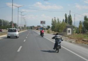 Erzincan’da motosikletli gençler ölümle adeta dans ediyorlar. Birkaç kişilik guruplar oluşturan gençler, ana yol üzerinde son sürat motosikletlerin üzerinde kasksız ve korumasız yarışıyorlar. Erzincan - Erzurum Karayolu’nun Akyazı Mevki’nde bir araya gelen gençler ölümle dans edercesine birbirleriyle yarışırken adeta kazalara davetiye çıkartıyorlar. Motosikletlerin üzerine yatarak kimi zamanda adeta uçarcasına yarışan bu gençleri görenler "Pes doğrusu" demekten kendilerini alamıyorlar. Yarış yapılan motosikletlerin çoğunun plakası dahi bulunmuyor. Koruyucu kask dahi takmayan gençler, ailelerinden habersiz trafiğe çıkıyor.