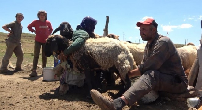 Hava sıcaklıklarının artmasıyla birlikte güney illerinden Muş'un serin yaylalarına gelen göçerler yaz sonuna kadar hayvanlarını burada otlatırken, koyunları kadınlar değil erkekler sağıyor.