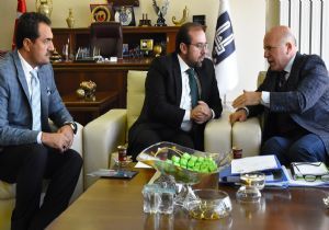 İl Müftü Vekili Celal Büyük ile Erzurum Din Görevlileri Dernek Başkanı Emrullah Kaçar, Erzurum Büyükşehir Belediye Başkanı Mehmet Sekmen’i makamında ziyaret etti.
