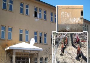 Erzurum’un Terminal Mahallesi'nde bulunan Celal Akın ilköğretim Okulu duvar yazılarıyla eğitim kurumundan uzak bir görüntü verirken, yine okul bahçesinde bulunan tavuklarla okulun bahçesi, tavuk çiftliğini anımsatıyor.