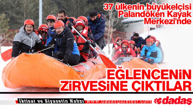 Erzurum Valiliği ve Doğu Anadolu Projesi (DAP) Bölge Kalkınma İdaresi Başkanlığınca hazırlanan "Kayağın İpekyolu Projesi" kapsamında, 37 ülkenin büyükelçisi Palandöken Kayak Merkezi'nde kar raftingi yaptı.