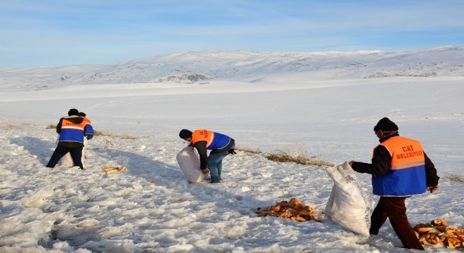 Erzurum'un Çat ilçesinde yaban hayata destek seferberliği başlatıldı. Çat Belediye Başkanı Arif Hikmet Kılıç'ın talimatıyla harekete geçen belediye ekipleri, ilçedeki dağı-taşı adeta ekmekle doldurdu.