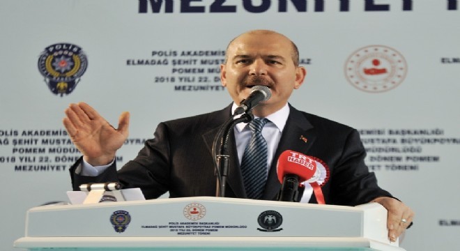 İçişleri Bakanı Süleyman Soylu, Polis Akademisi Başkanlığı Elmadağ Şehit Mustafa Büyükpoyraz POMEM Müdürlüğünün 22. dönem mezuniyet törenine katıldı. Burada bir konuşma yapan Bakan Soylu, Türkiye’nin özellikle son 5 yıldır çok ciddi ve büyük sınavlardan geçtiğine dikkat çekerek, “Küresel terör, göç, güney sınırımızdaki karmaşa, DEAŞ, içeride PKK terörü ve hepsine tuz biber gibi eklenen FETÖ ihaneti, bu resmin en karanlık parçalarıydı. Son 5 yılda yaşadığımız işler, alelade bir ülkenin kaldırabileceği işler değildir. Türkiye’den 2002’de başlattığı gelişmesinin ve kalkınmasının hesabını sormak istediler. Biz kalkındıkça onlar sinirlendiler. Biz yollar yaptıkça, şehir hastanesi yaptıkça, savunma sanayiinde üretimi arttırdıkça, yerli ve milli ürettikçe, kendi tüfeğimizi, kendi tankımızı, kendi İnsansız Hava Aracımızı yaptıkça, IMF’den bağımızı koparttıkça sinirlendiler ve hırçınlaştılar. Sürekli üstümüze geldiler. Attığımız her adımda karşımıza dikildiler. Türkiye’yi istikrarsızlaştıracak her ne varsa bütün terör örgütlerini, ihanet şebekelerini, içeride fitne çıkaracak en küçük bir sosyal medya hesabını bile desteklediler. Türkiye’nin son 5 yılda yaşadığı işler, alelade işler değildir. Ancak, Türkiye kendisine karşı kurulmak istenen bütün tezgahları bozmuştur. Hem kendi ülkesinde bozmuştur hem de bulunduğu coğrafyada bozmuştur. Yaşadığı bütün sınavlardan başarıyla çıkmış, karşılaştığı bütün fitneleri bileğinin gücü ve kardeşliği ile atlatmıştır. İstikrarımızdan asla taviz vermedik. Ne siyasal istikrarımızdan, ne ekonomik istikrarımızdan ne de güvenlik istikrarımızdan bir milim sapmadık. Dış politikamızı onun bunun ağzına bakarak, korkarak, başkasından medet umarak veya boş hayaller kurarak değil, kendi kararımızla, bin yıllık devlet aklımızla ve milletimize güvenerek kendimiz belirledik. Kimseden icazet almadık. Girmemiz gereken yere girdik, atmamız gereken adımları attık. Sokaklarımıza sahip çıktık. Sandığa ve demokrasimize sahip çıktık. En önemlisi de kardeşliğimize sahip çıktık. Tüm bu yaşananlara rağmen üzerimizdeki göç yüküne, terör baskısına, küresel siyasi hesaplara rağmen Türkiye, gelişmesini ve kalkınmasını sürdürmeyi bilmiştir. Özellikle PKK ile mücadelede neredeyse sona yaklaştık. Şehirden tamamen sildiğimiz PKK’yı kırsalda da mağaraların içine tıktık. DHKP-C’yi ise kırsaldan tamamen sildik. Yazın olduğu gibi kışın da operasyon halindeyiz. Yerli üretim İHA’larımız yukarıdan buluyor, biz aşağıdan topluyoruz. Evlatlarımız bunlara nefes aldırmıyor. Öte yandan bunların beslendiği kaynakları kestik. Ele geçirdikleri belediyeleri tekrar milletin hizmetine verdik” ifadelerini kullandı.