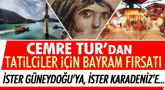 Cemre Tur ve Seyahat Acentesi Şenollar Turizm’in Yönetim Kurulu Başkanı Nuh Şenol, Kurban Bayramı’na özel turlarıyla tatilcileri büyük bir fırsatın beklediğini söyledi. Şenol, konforlu bir seyahat imkanı, uzman tur operatörleri ve kusursuz hizmet sunumuyla Cemre Tur’un bu bayramda hem Güneydoğu ve hem de Karadeniz’e özel turlar düzenleyeceğini belirterek, “Dileyen tatilcileri Güneydoğu ile dileyen tatilcileri Karadeniz’le buluşturuyoruz. Güneydoğu turumuzu 21-25 Ağustos tarihlerinde, Karadeniz turumuzu ise, 21-24 Ağustos tarihlerinde gerçekleştireceğiz” dedi.