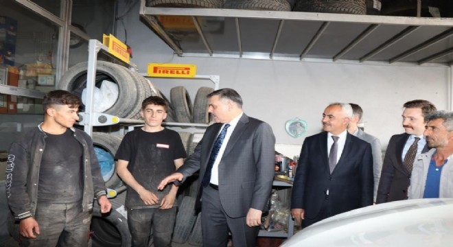 Oltu'da bulunan sanayi sitesindeki dükkânlarda incelemelerde bulunan Erzurum Valisi Mustafa Çiftçi, esnafın çay ikramını geri çevirmedi ve onlarla sohbet etti.