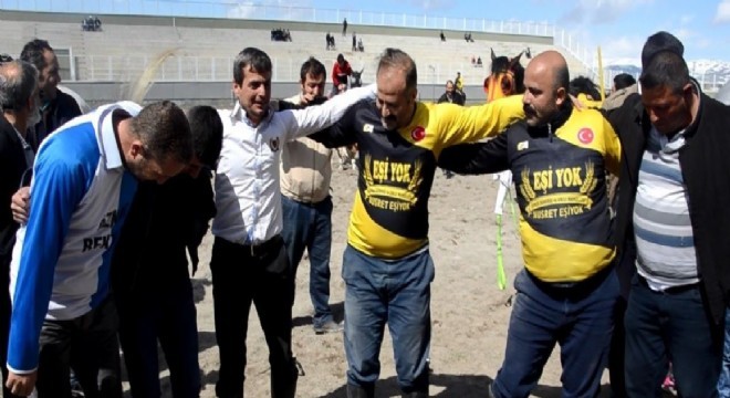 Erzurum’da oynanan cirit müsabakasının devre arasında rakipler davul zurna eşliğinde omuz omuza halay çekti.