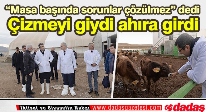 Çizmeleri ayağına giyip, süt ve besi ahırlarını dolaşan Erzurum Valisi Okay Memiş, “Sahaya inmemiz gerekiyor. Masa başında sorunlar çözülmez. Gerekiyorsa ahıra kadar girip, problemleri yerinde çözeceğiz” dedi.