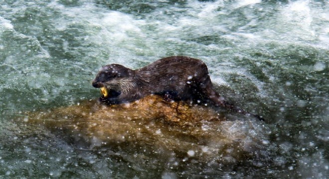 Oyun oynamayı seven, oyuncu bir tür olarak bilinen ve Çoruh'un sularında bata çıka oyunlar oynayan su samuru bu sefer nehir kıyısında görüntülendi.