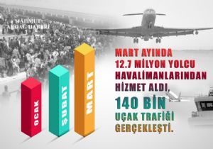 DHMİ Genel Müdürlüğü tarafından açıklanan 2016 yılı Mart ayı İstatistiklerine göre; Türkiye geneli Havalimanlarından Mart ayında hizmet alan yolcu sayısı 12,7 milyon oldu. Yolcu, uçak, yük trafiğinde artışın devam ettiği 3 aylık dönemde toplam yolcu sayısı 36,5 milyona ulaştı.