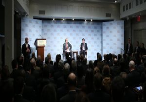 Davutoğlu, ABD'nin New York kentindeki temasları kapsamında Ritz Otel'de yatırımcı işadamlarını kabul etmesinin ardından, Dış İlişkiler Konseyi Yıllık Kurumsal Konferansı'na şeref konuğu olarak katıldı.