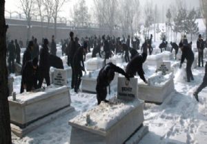 Erzurum Kars Kapı Şehitliğini ziyaret eden 400 izci dedelerinin mezar üstünde biriken karları temizleyerek dua ettiler.