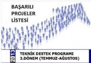 Teknik Destek başvurularından toplam 70 ve üzerinde puan alanlar başarılı projeler olarak kabul edilmiştir. Değerlendirme sonuçlarına göre, başarılı olan toplam 14 proje listede yer almıştır.