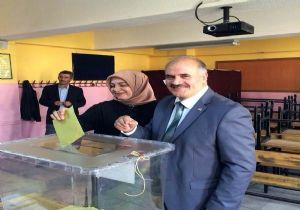 Vali Günay Özdemir, daha sonra eşi Nurcan Özdemir ile birlikte oy kullanacağı 1035 nolu sandığa gelerek sandık görevlileriyle br süre konuştuktan sonra oyunu kullandı.