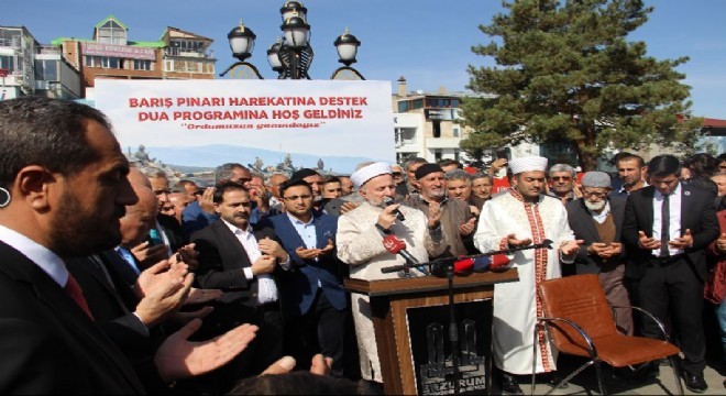 ‘Barış Pınarı Harekatına Destek, Dua Programına Davet’ anonslarıyla, Cuma namazından çıkan vatandaşlara çağrı yapılan ve Yakutiye Kent Meydanı’nda toplanılan organizasyona, Erzurum Valisi Okay Memiş, Büyükşehir Belediye Başkanı Mehmet Sekmen, Yakutiye Belediye Başkanı Mahmut Uçar ve Erzurum Din Görevlileri Başkanı Emrullah Kaçar katıldı.