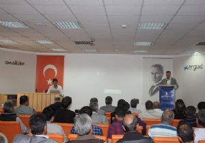 ERGİAD Toplantı Salonunda düzenlenen bilgilendirme seminerine çiftçiler, ERGİAD yetkilileri ve Abalıoğlu Yem Firması Genel Müdür Yardımcısı Yalçın Akhan, katıldı.
