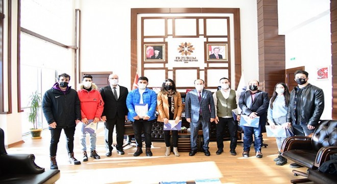 ETÜ Rektörü Prof. Dr. Bülent Çakmak, Doç. Dr. Sevinç Namlı rehberliğindeki Topluma Hizmet Uygulamaları dersi kapsamında Ağaç Dikme Etkinliği, Sesli Kitap, Sokak Hayvanlarını Unutmayalım ve Bu Kış Beni Sen Giydir başlıklı projeler yürüten Spor Bilimleri Fakültesi ile Mühendislik ve Mimarlık Fakültesi öğrencilerini ağırladı. Öğrencilerle projeleri hakkında sohbet eden Rektör Çakmak Erzurum Teknik Üniversitesi bünyesinde sosyal duyarlılık projelerine imza attıkları, sosyal sorumluluk bilincinin gelişimine ve toplumsal farkındalığa katkıda bulundukları için proje ekibinde yer alan öğrenciler ve öğretim görevlilerinden Doç. Dr. Sevinç Namlı ile Arş. Gör. Yusuf Buzdağlı’yı tebrik ederek, kendilerine teşekkür belgesi takdim etti.