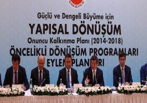 Başbakan Ahmet Davutoğlu, ''Güçlü ve Dengeli Büyüme için Yapısal Dönüşüm'' başlığıyla Onuncu Kalkınma Planı kapsamında öncelikli dönüşüm programlarına ilişkin eylem planlarını açıkladı.
