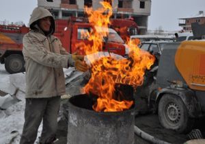 Gece hava sıcaklığının sıfırın altında 20 derece olarak ölçüldüğü şehirde, inşaatta çalışan işçiler ise ateş yakıp ısınmaya çalışıyor. İnşaat sektöründe çalışan işçiler, soğuk havaya aldırış etmeden çalışıyor. İşçiler, bu şekilde çalışmanın zor olduğunu söylediler.