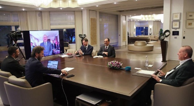 Cumhurbaşkanı Recep Tayyip Erdoğan, Cumhurbaşkanlığı Kabine üyeleriyle video konferans yöntemiyle görüştü. Toplantıda Cumhurbaşkanı Erdoğan'a İletişim Başkanı Fahrettin Altun ve Cumhurbaşkanlığı sözcüsü İbrahim Kalın da eşlik etti.