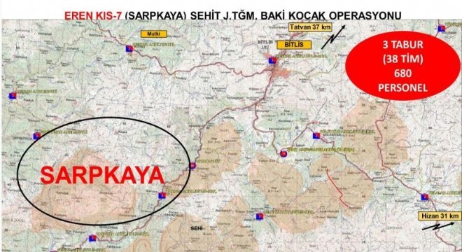 Bitlis'te gerçekleştirilen, PKK terör örgütünü ülke gündeminden çıkarmak ve bölgede barındığı tespit edilen teröristleri etkisiz hale getirmek amacıyla yürütülen operasyonda 38 operasyonel timin görev aldığı ifade edildi. Ayrıca Bakanlık, ‘Eren Kış Operasyonları’nın inançlı ve kararlı olarak başarılı bir şekilde devam ettiğini vurguladı.