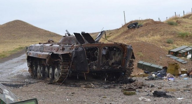 Azerbaycan’ın Ermenistan işgali altındaki topraklarını geri almak için başlattığı operasyonlar hız kesmeden devam ediyor. Azerbaycan Savunma Bakanlığı tarafından yapılan açıklamada, Ermenistan ordusuna bağlı askerlerin cephede yiyecek içecek sıkıntısı çektiği ve ikmal yapılamadığı için mevzileri bırakıp kaçtığı aktarıldı. Açıklamada, “Hadrut'ta Ermenistan Silahlı Kuvvetlerinin 3'üncü Alayı'na bağlı askerler savunma alanında silah, yiyecek ve yakıt sıkıntısı yaşıyor. 3'üncü Alay askerleri savunma mevzilerinden ayrıldı. Aynı zamanda askeri birliğin şoförleri askeri araç ve ekipmanı atarak savaş alanından kaçtı" denildi.