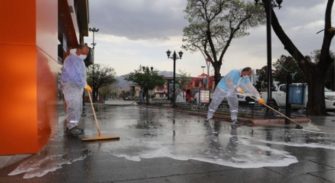 Ekipler, Ordu Caddesi, Fevzipaşa Caddesi, Halitpaşa Caddesi ve 13 Şubat Caddelerinde rutin olarak ilaçlama çalışmalarını gerçekleştirirken yollar, kaldırımlar, otobüs durakları ve çöp bidonları dezenfekte ediliyor.