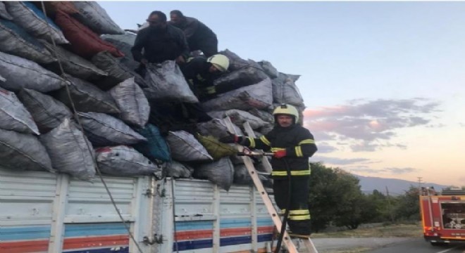 Erzincan-Erzurum karayolunda seyir halindeki mangal kömürü yüklü tırda yangın çıktı. Yangın itfaiye tarafından söndürülürken, kömürlerde maddi hasar meydana geldi.