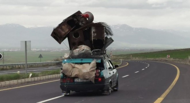 Bingöl-Erzurum karayolu üzerinde yolculuk yapan vatandaşlar, önlerinde gördükleri aşırı yüklü otomobili fark edince şaşkınlık yaşadı. Şehirler arası yolda giden otomobilin bagajından üzerine kadar her yerinin dolu olması dikkat çekti. Aşırı yüklü olan aracı görenler, otomobil değil sanki kamyonet yakıştırması da yaptı.