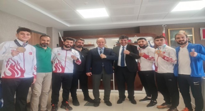 Dünya Şampiyonasından madalya ile dönen sporcuları ve antrenörler Emre Şahin’le, Cebrail Gençoğlu’nu kutlayan Gençlik ve Spor İl Müdürü Levent Çakmur, destekleri için Erzurum Büyükşehir Belediye Başkanı Mehmet Sekmen’e teşekkür etti. Çakmur, “Başkan Sekmen ve Spor A.Ş. Genel Müdürümüz Ahmet Dal’ın spora ve sporcuyla destek vermesi bizleri mutlu ediyor. İnanıyorum ki, sporcularımız bundan sonra kürsünün en üst basamağında olacaklar” dedi.