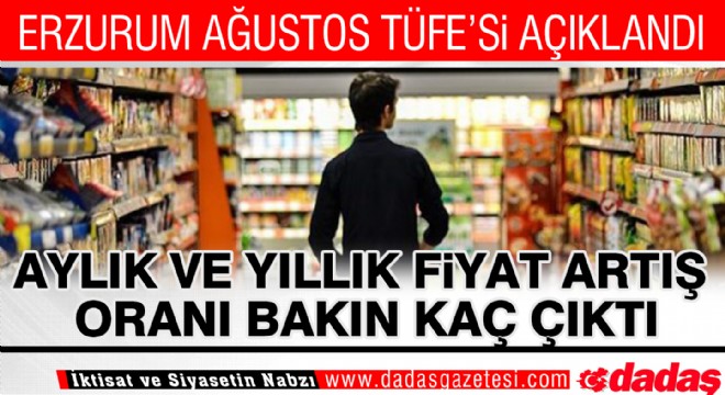TÜFE Ağustos 2018 dönemi verileri bazında, Erzurum İstatistik Bölgesi’nde enflasyon, Türkiye ortalamasına göre, aylık bazda yüzde 0,45, 2017 yılı aralık ayına göre yüzde 0.26, yıllıkta yüzde 1.18, 12 aylık ortalamalara göre fiyat değişim oranında ise yüzde 0.49 oranında yüksek çıktı.