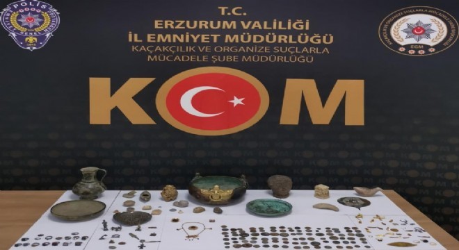 Erzurum Emniyet Müdürlüğü Kaçakçılık ve Organize Suçlarla Mücadele Şube Müdürlüğü (KOM) ve İstihbarat Şube Müdürlüğünce gerçekleştirilen operasyonda 182 adet tarihi eser ele geçirildi. Operasyon kapsamında 5 şüpheli gözaltına alındı.