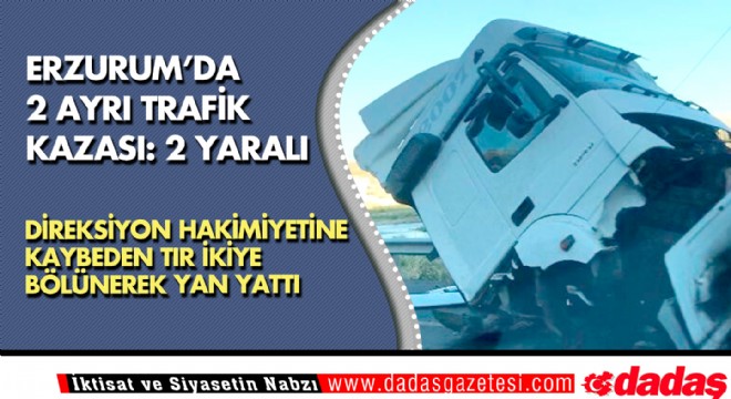 Köprüköy ilçesinde meydana gelen ilk trafik kazasında tır ikiye bölünerek devrildi. Kazada sürücü yaralandı.