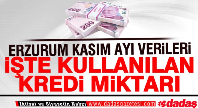 Kasım 2018 dönemi ölçeğinde Erzurum’da 11,7, KUDAKA istatistik Bölgesi illerinde 14.4, Kuzeydoğu Anadolu İstatistik Bölgesi illerinde 21,9, Doğu Anadolu Bölgesinde ise 47,4 milyar TL tutarında nakdi kredi kullanımı gerçekleşti. İlin Doğu Anadolu Bölgesi toplamında nakdi kredi kullanım tutarı payı yüzde 24,7 olarak hesaplandı.