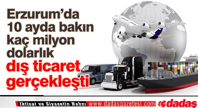Ticaret Bakanlığı Ekim ayı dış ticaret verilerini açıkladı. Erzurum’da 10 ayda 14,4 milyon dolarlık ihracat, 36,4 milyon dolarlık ithalat olarak toplam 50,8 milyon dolarlık dış ticaret gerçekleştirildiği bildirildi.