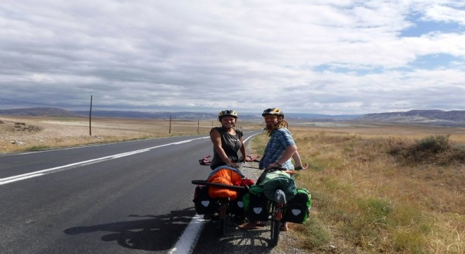 Almanya’dan başlayıp bisikletle dünya turuna çıkan Alman biyolog çift, 3 bin 500 kilometre yol kat ettikten sonra Erzurum’da mola verdi.